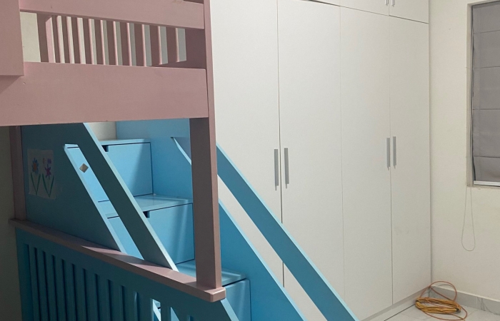 + Nội thất bao gồm: Tủ bếp kệ bếp + 1 bếp từ, 3 máy lạnh,2 quạt trần, giường tủ quần áo đầy đủ,.... có giường tầng cho bé rất đẹp, khóa từ, thẻ thang máy, thẻ khóa từ, điện thoại liên lạc nội bộ,...