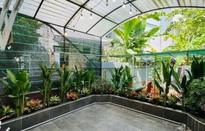 - Diện tích: Ngang 4m x 11m, tổng diện tích 40m², có thêm vườn trồng rau 15m².